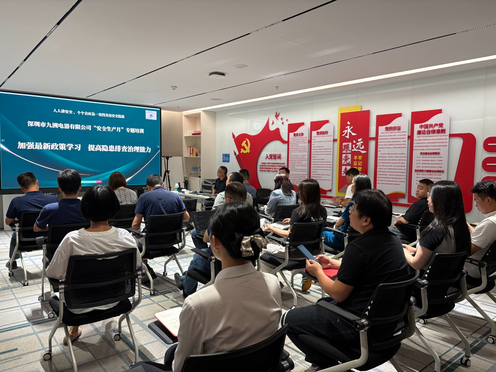 2025年6月,正值我国第24个全国 “安全生产月”,深圳九洲电器积极响应国务院、省、市及九洲集团安委会的安排部署,以 “人人讲安全、个个会应急 —— 查找身边安全隐患” 为主题,深入开展了一系列形式多样、内容丰富的安全生产活动,全力营造安全氛围,提升全员安全意识与应急能力。