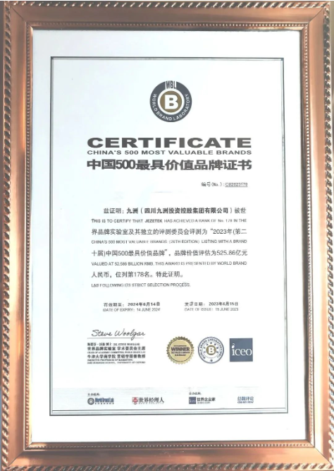 6月15日,由世界品牌实验室主办的“第二十届世界品牌大会”在北京举办?;嵘?,发布了2023 年度 (第 20 届)“中国 500 最具价值品牌”榜单。九洲集团以525.86亿元的品牌价值,位列第178名,品牌价值较上届提升32.6%,排名上升5位。九洲集团党委副书记、总经理孙仲代表公司到现场领奖。