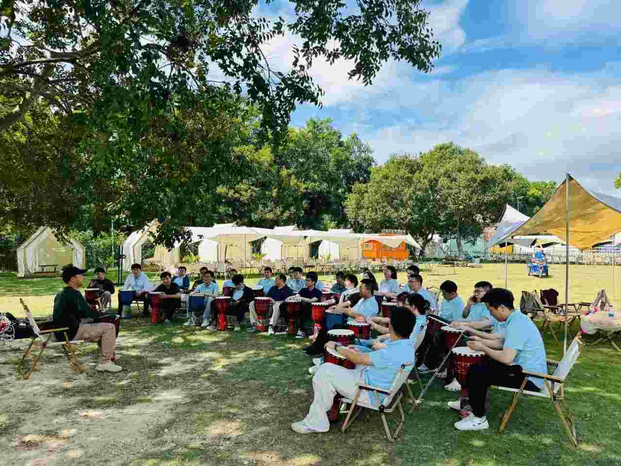大家在教练的耐心指导下,逐渐掌握了非洲鼓的演奏要领,从简单的节奏到复杂的合奏曲目,用双手敲击出富有节奏感的鼓声,“咚 —— 咚 —— 咚”,声音从起初的生涩在不断的重复和磨合中,逐渐变得稳定而有力,每一次敲击都诉说着团结的力量!