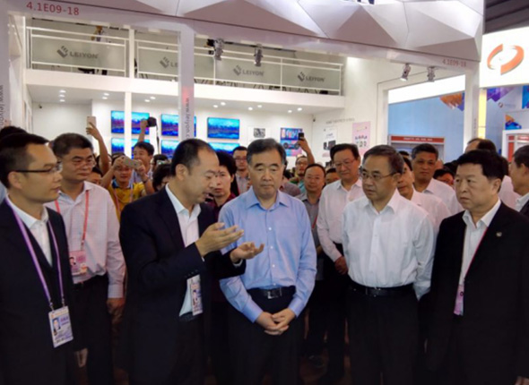 中共中央政治局委员,国务院副总理汪洋在中共中央政治局委员,广东省委书记胡春华的陪同下莅临九洲广交会展台