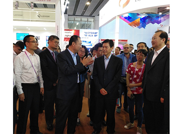10月17日,四川省商务厅厅长刘欣一行到访九洲展位,详细了解九洲的参展情况