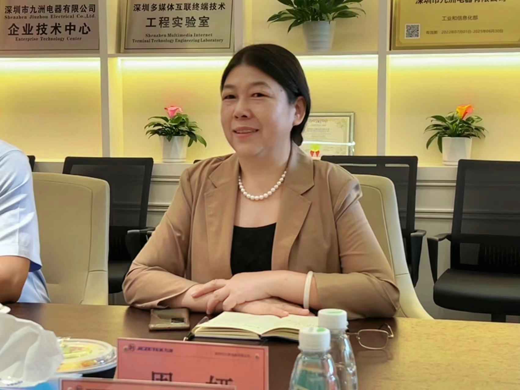 为加强校企合作交流,实现校企优势互补、资源共享,探索产教融合新模式,10月31日上午,桂林电子科技大学副校长周娅一行莅临深圳市九洲电器有限公司参观调研,并就“校企合作、产教融合”展开深入交流。公司总经理韩高典、副总经理石旭科、夏兵及桂电校友代表参加了接待交流。