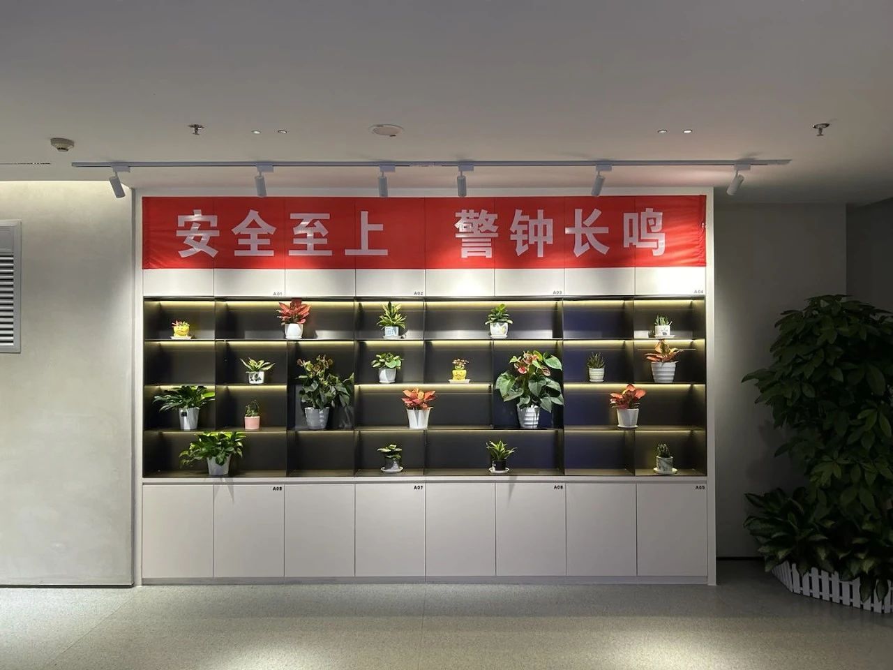 “安全生产月”宣传标语及消防器材展示