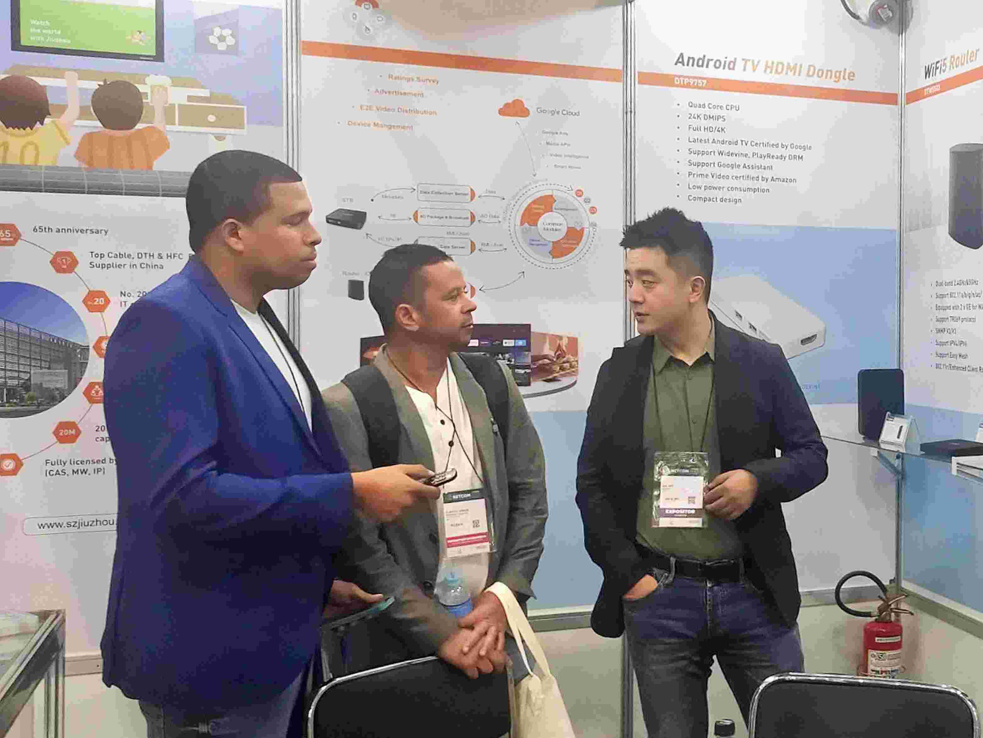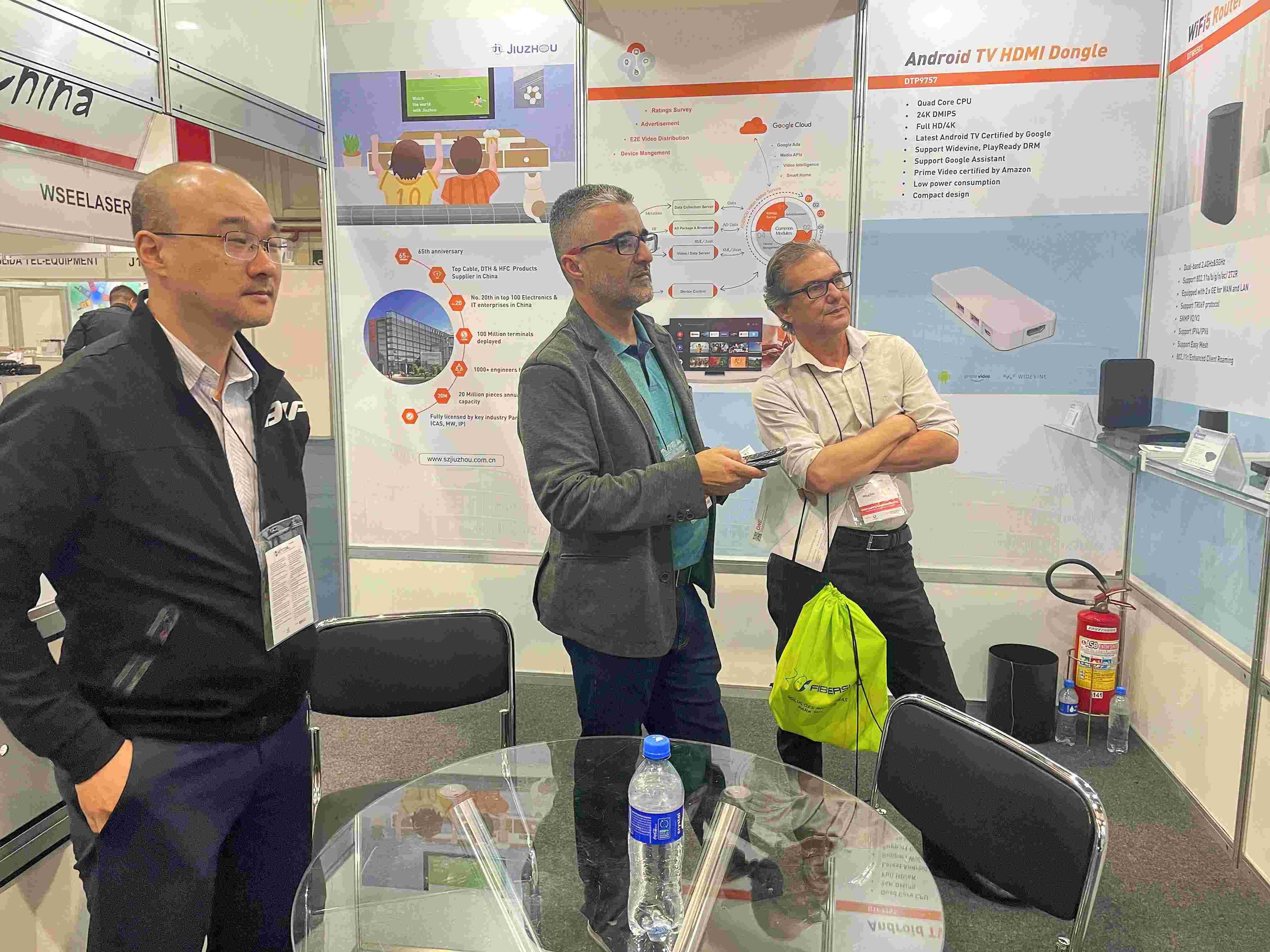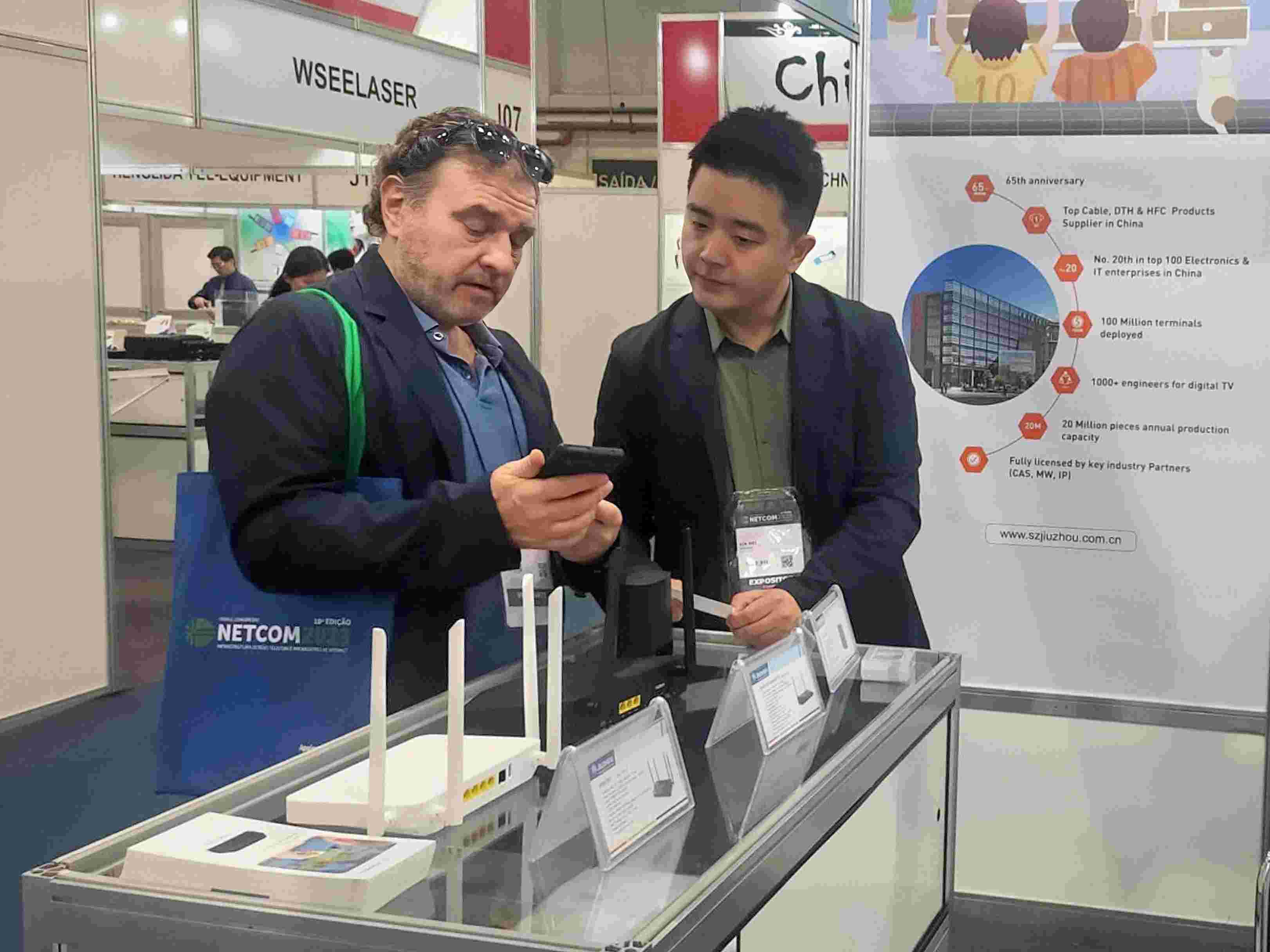 继6月参加新加坡亚洲科技展后,深圳九洲电器数字电视团队又马不停蹄地远赴巴西,参加NETCOM 2023。本次展会,深圳九洲电器展台集中展出5G CPE,Wi-Fi 6路由器,GPON&OTT和家庭网关等多款智能终端产品及整体解决方案,吸引了诸多关注。
