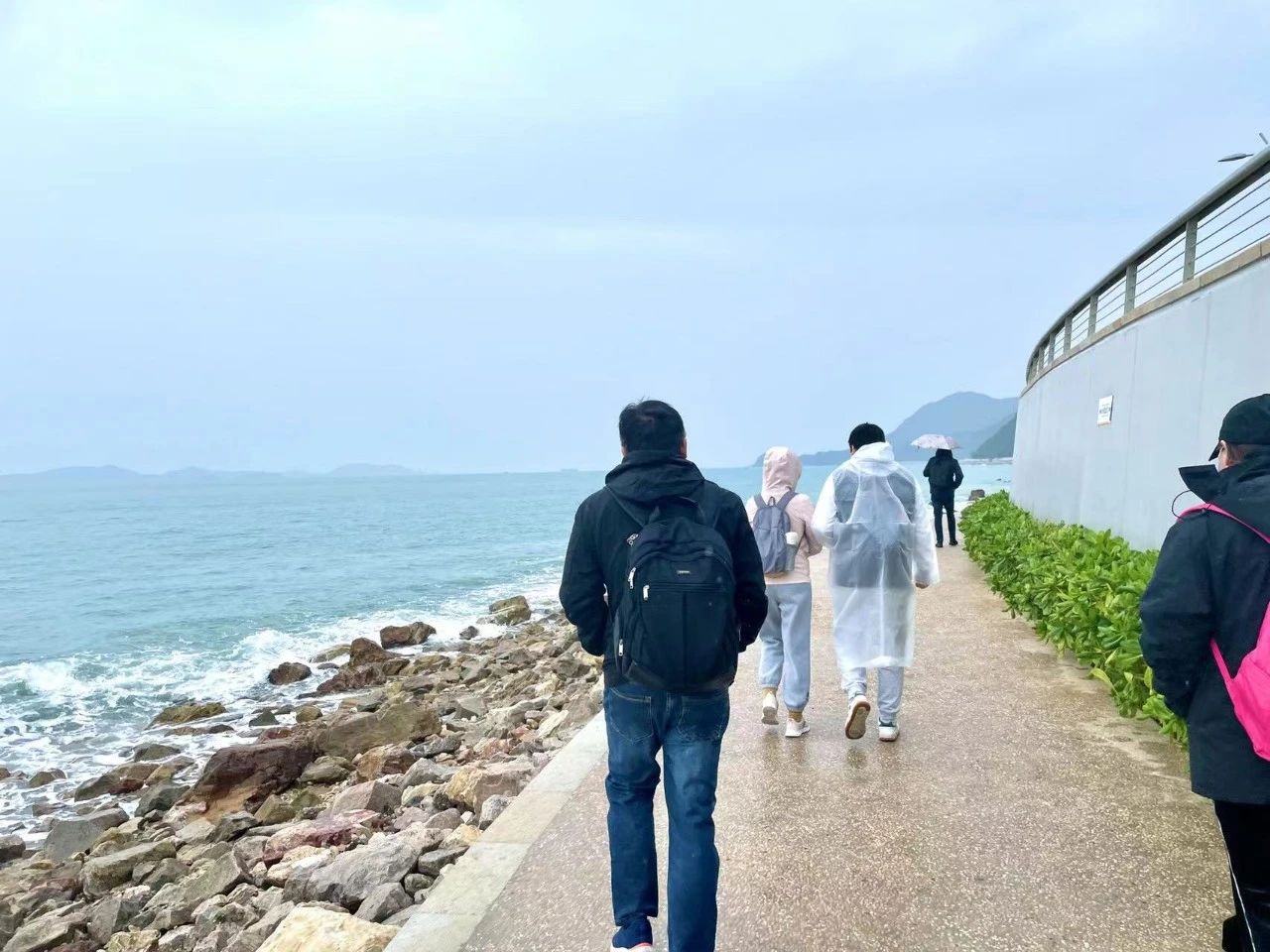 活动当天,南方的初冬湿冷中还伴随着蒙蒙细雨,但同事们带着风雨无阻的乐观心态和热情携手出发,雨中的海浪与鸟雀之声比平时更澎湃,下雨天似乎给本次山海征途增添了些许未知的惊喜。