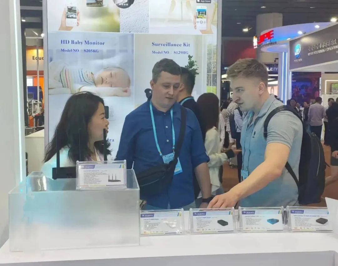 在九洲展位,光网络终端产品、精密汽车PCB、一体机等系列进出口创新产品惊艳亮相,吸引了不少客商驻足。现场工作人员热情接待,积极开展产品推广工作,全力用好广交会这一国家级进出口商品展示窗口,拓宽市场渠道,扩大销售订单,为公司业务发展作出贡献,并持续推进九洲产品国际化、市场国际化、品牌国际化,提升影响力。