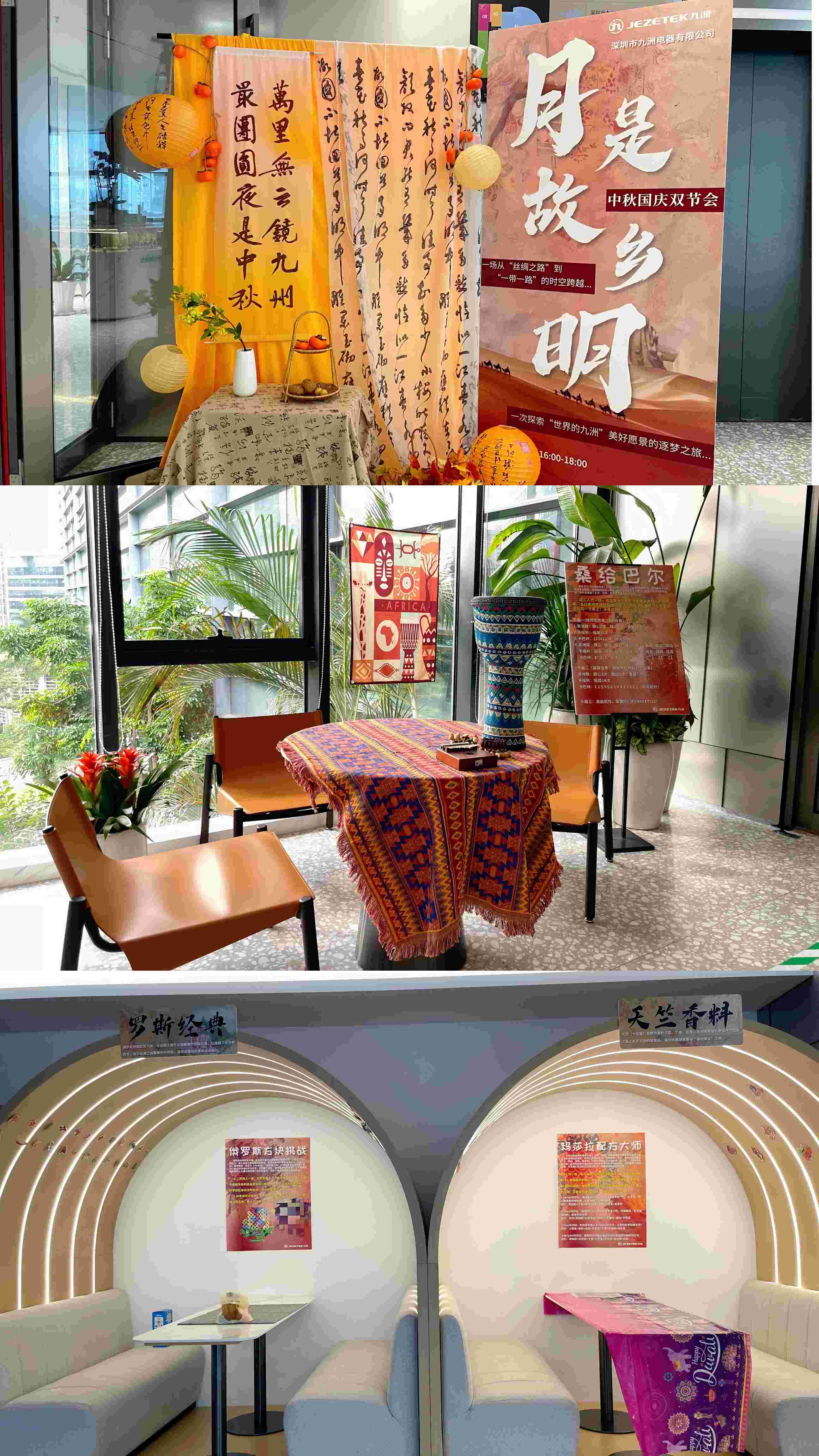 万里无云镜九洲,最团圆夜是中秋,9月13日,深圳九洲电器组织开展以“月是故乡明”为主题的中秋国庆双节会。本次活动融入了“丝绸之路”元素,在感受节日氛围与九洲文化的同时,弘扬了合作共赢、开放包容的丝路精神,进一步拓展了大家的视野,增进了对跨文化的认知。