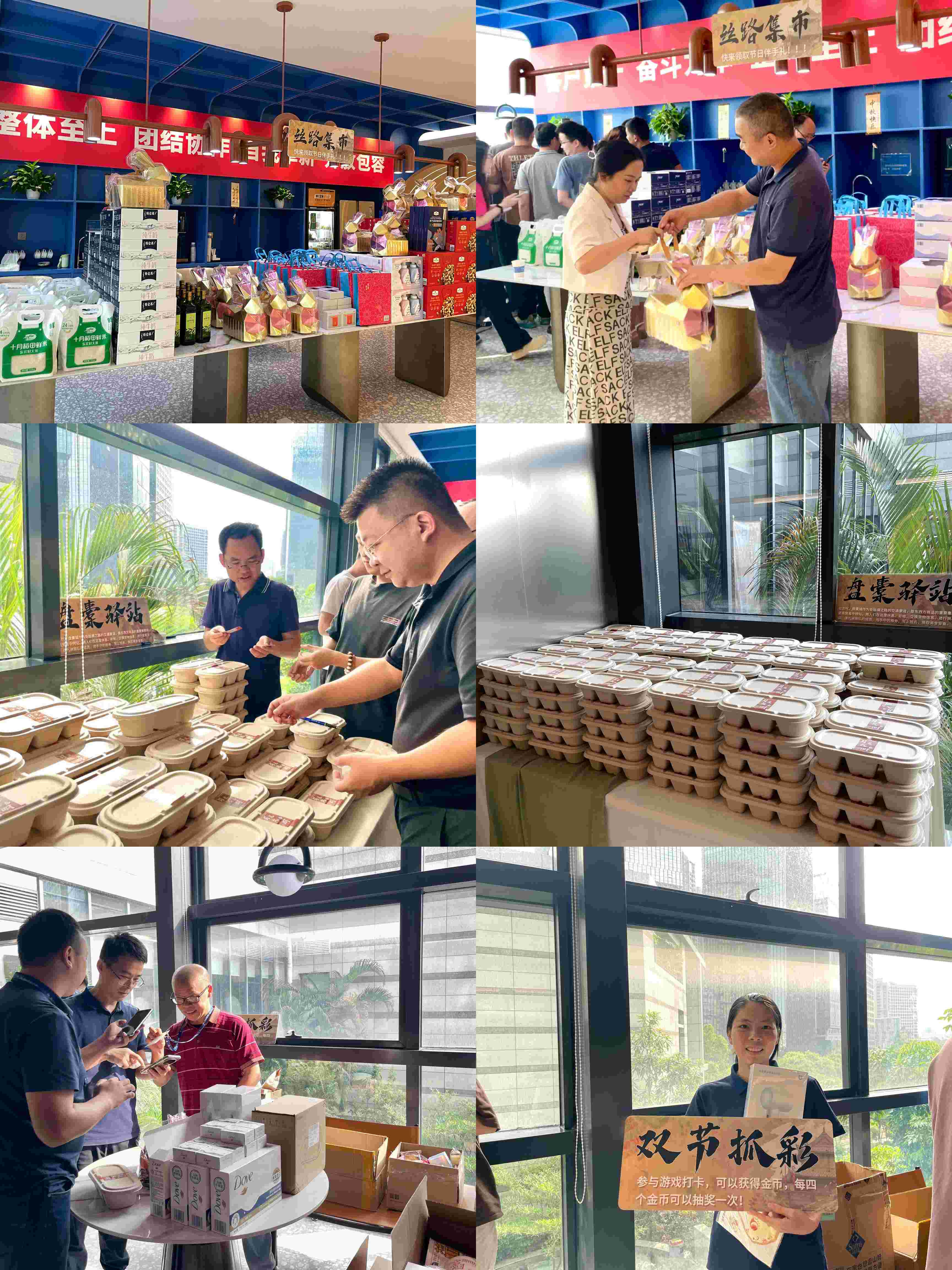 在丝路集市,同事们领取专属伴手礼,同时,也用闯关获得的游戏币,进行抽奖,惊喜连连,笑声不断。