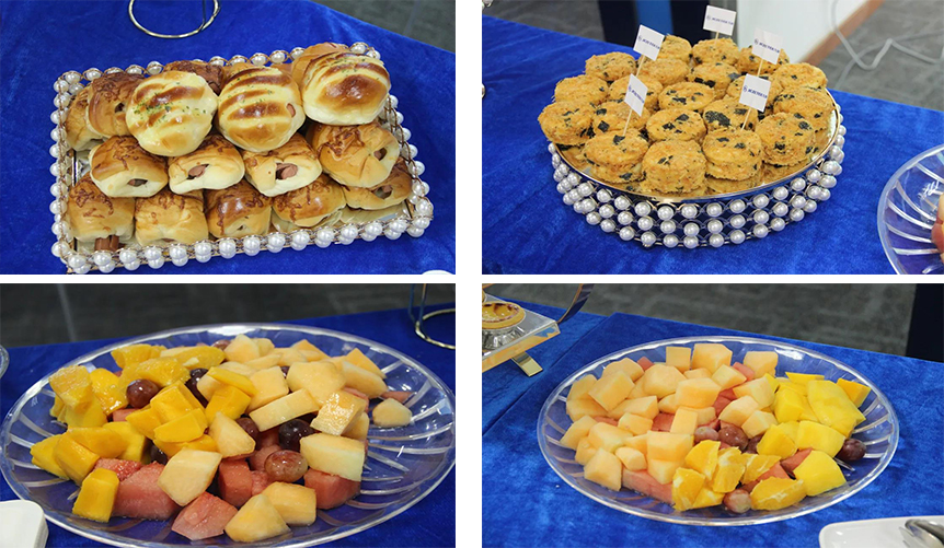 现场不仅有精彩的干货培训课程,更有美味佳肴让人垂涎欲滴,深圳九洲为大家提供美味茶歇,课间休息时间,学员们前往茶歇区,分享美食,喜笑颜开。