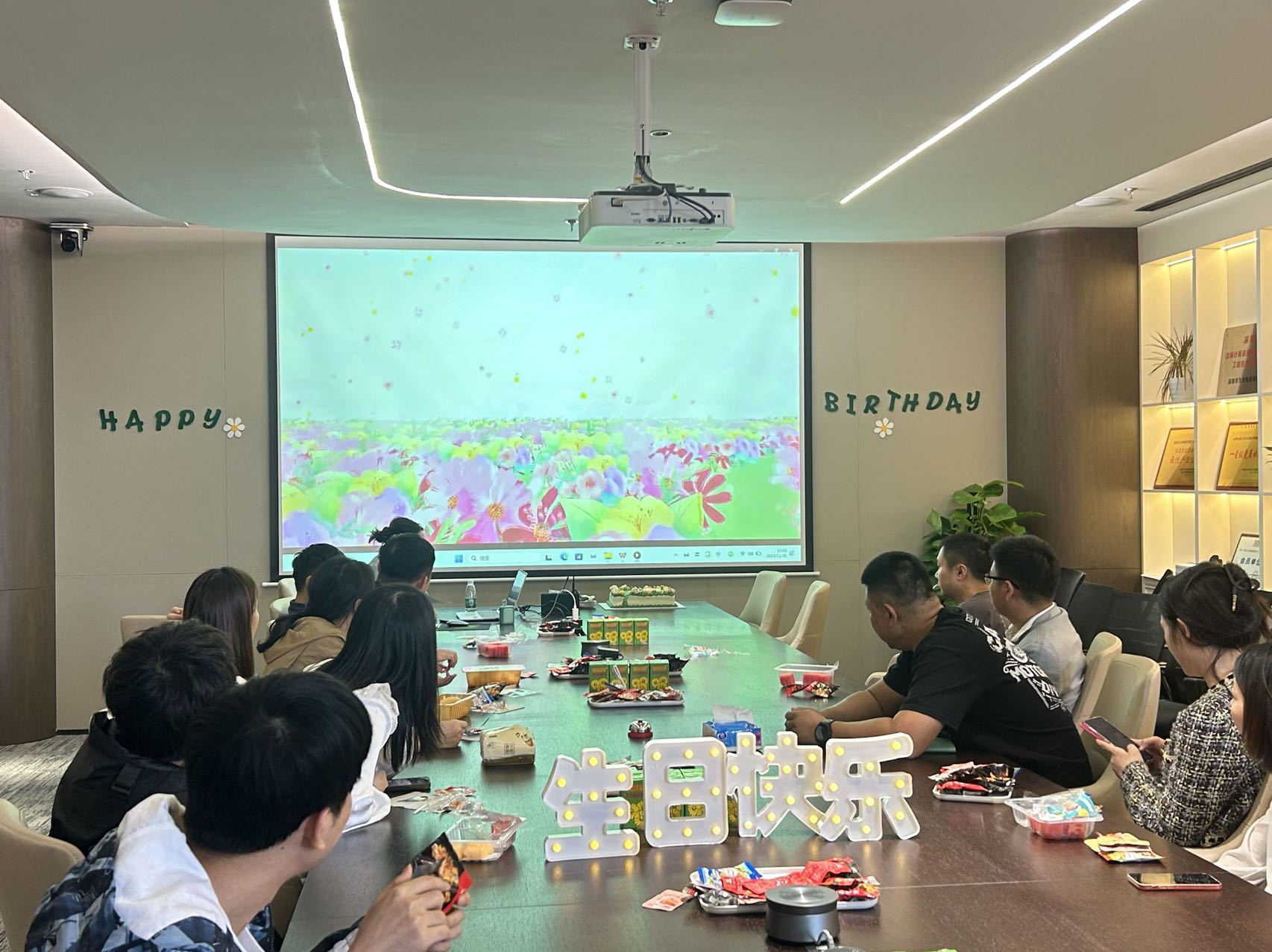 伴随着欢快的音乐声,大家同唱生日歌,共同许下美好心愿,留下了幸福的瞬间!