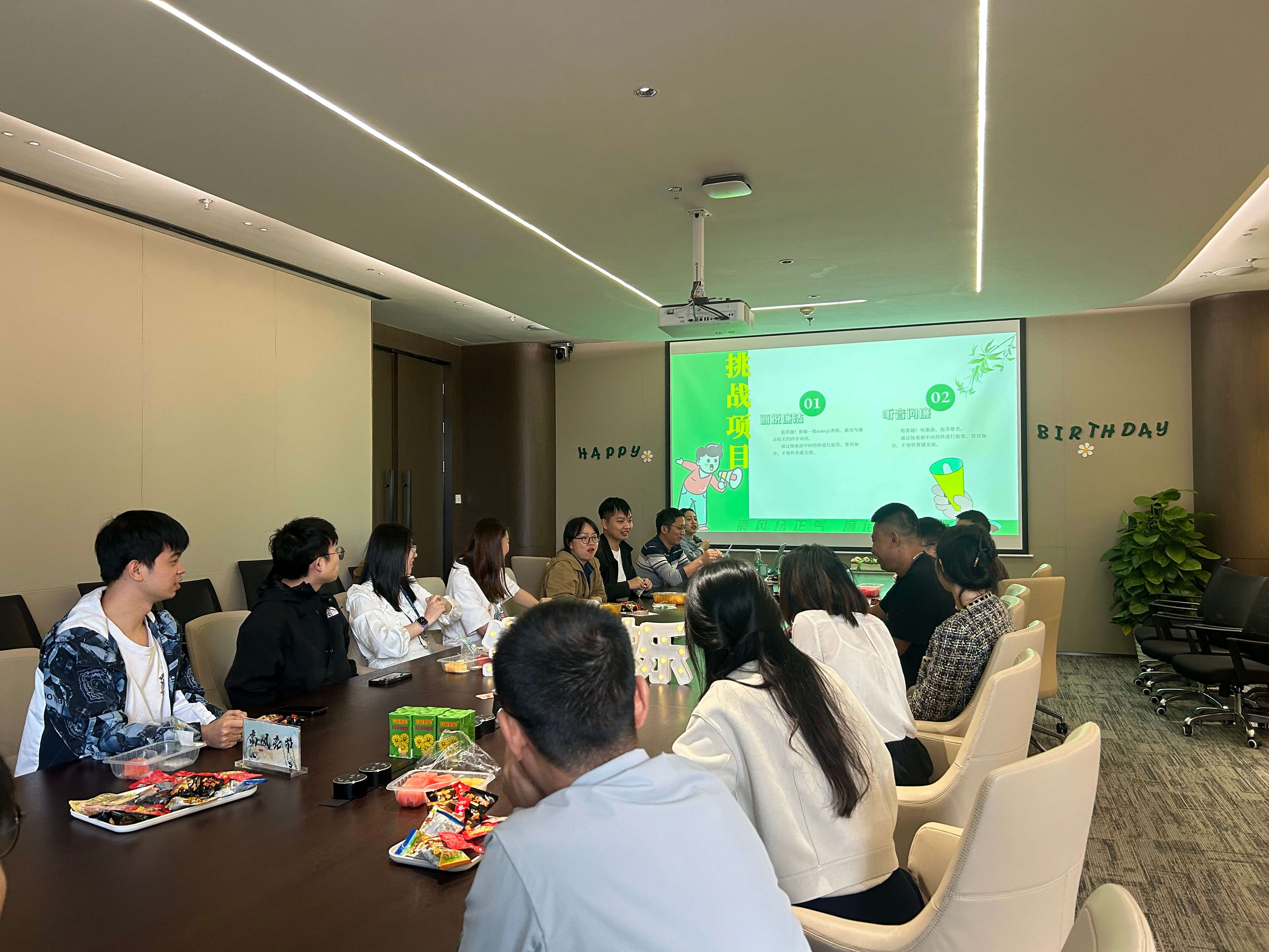 将廉洁文化融入到生日会游戏中,寿星们组成“高风亮节”和“胸有成竹”两支队伍,通过“画说廉洁”、“听音问廉”等小游戏的比拼,既保留了生日会轻松快乐、趣味性强的氛围,也加强了廉洁文化教育,做到寓“廉”于乐、春风化雨。