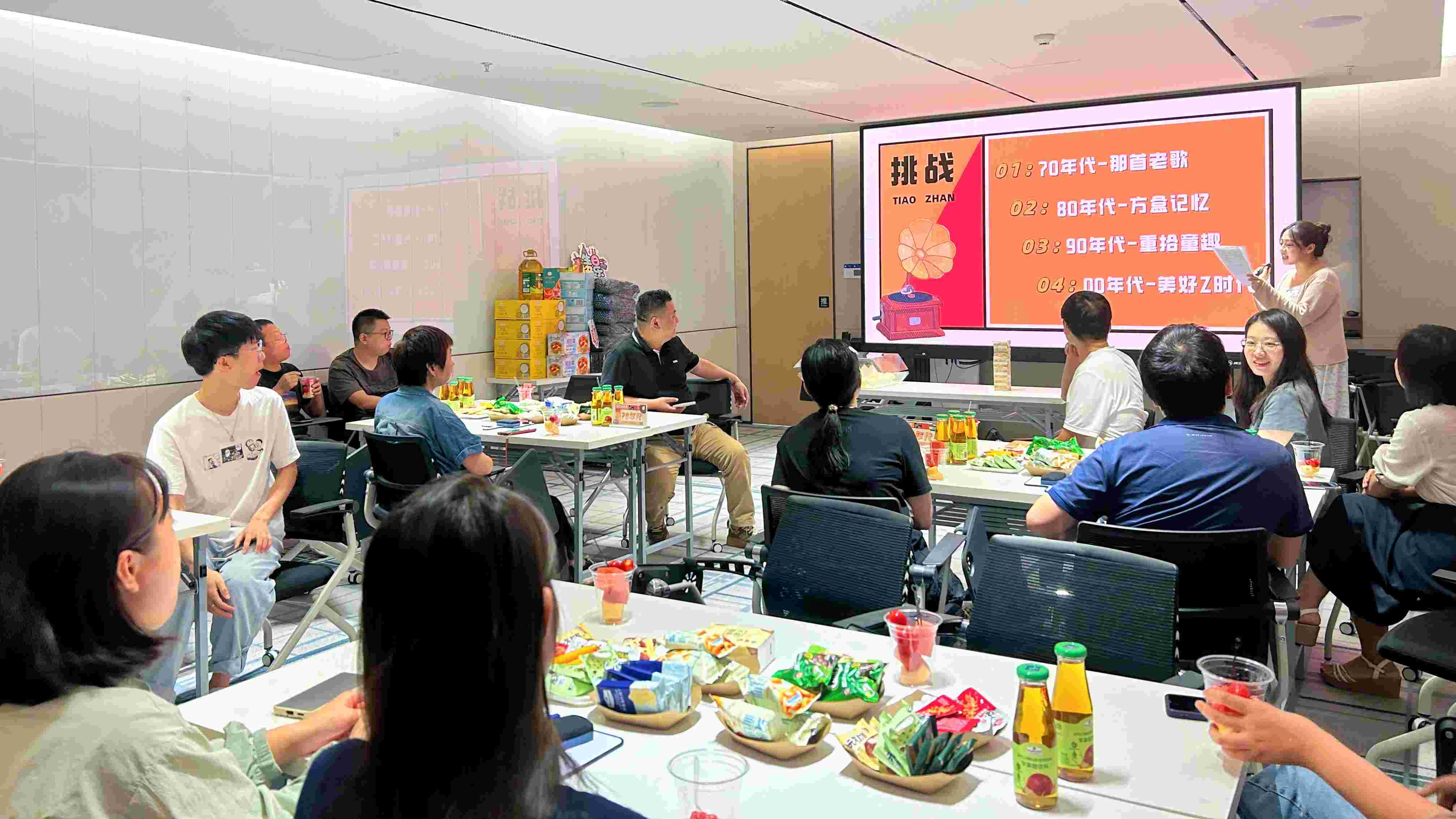 随后,生日会上上演了一场深九人的“年代秀”,寿星们自动分为70、80、90、00四支队伍,共同挑战“那首老歌”、“方盒记忆”、“重拾童趣”、“美好Z时代”四个项目,开启了跨越时空的回忆之旅,体会了70一代的艰苦奋斗、80一代的使命担当、90一代的变革创新、00一代的朝气蓬勃。